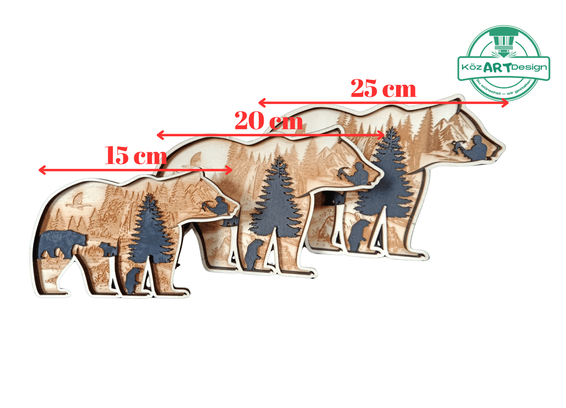 Dieser Layered Holz-Bär bringt den Zauber des Waldes direkt in dein Zuhause. Mehrere präzise gelaserte Schichten aus stabilem 4 mm Pappelsperrholz schaffen einen einzigartigen 3D-Tiefeneffekt mit Bäumen, Bergen und Bärenfamilie.