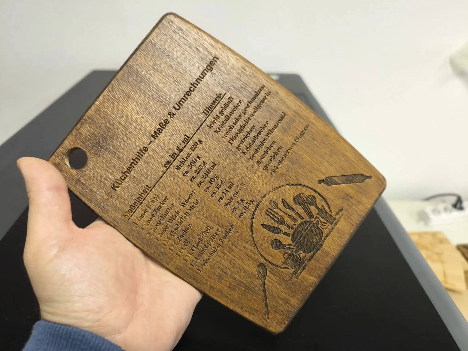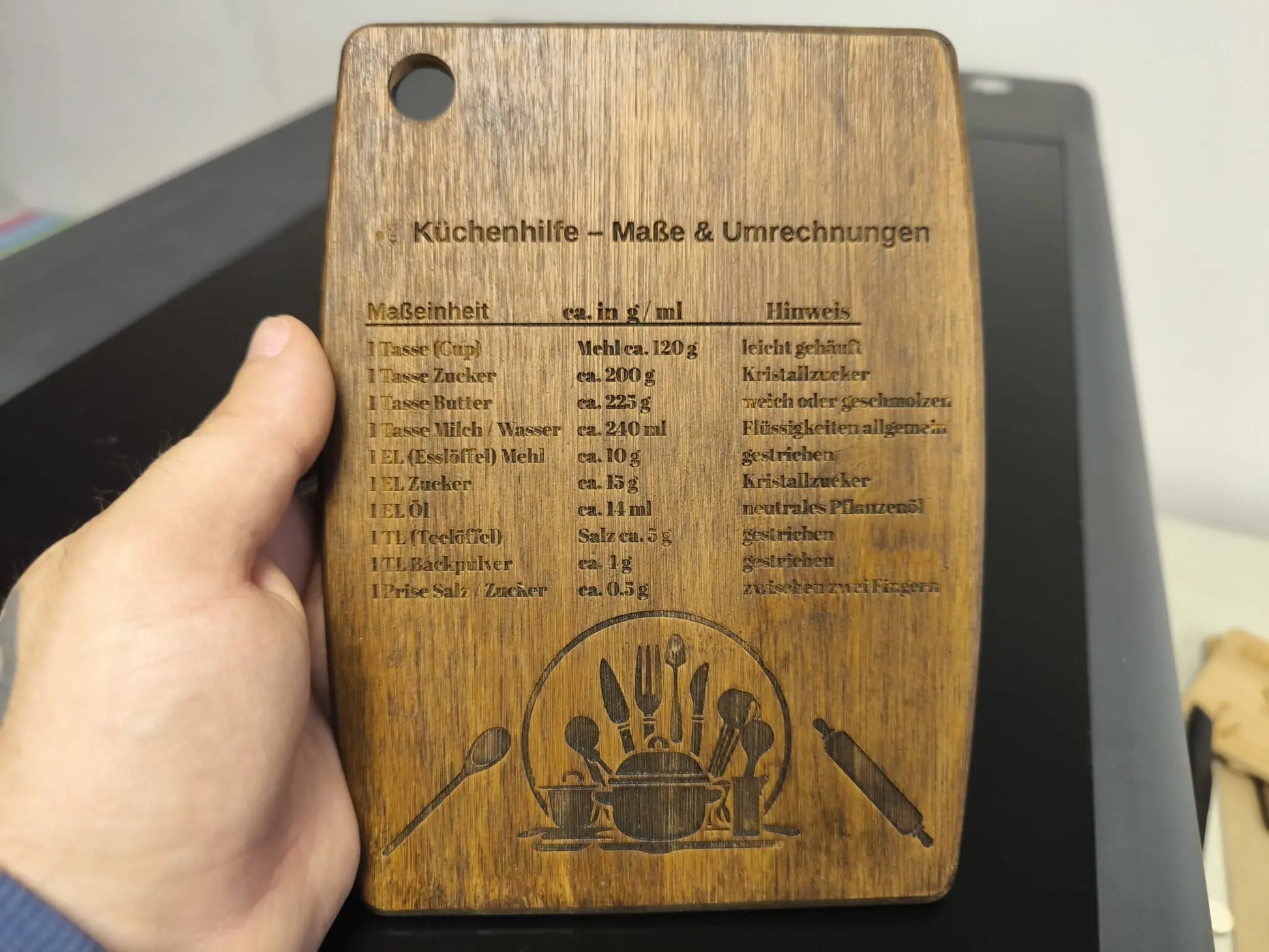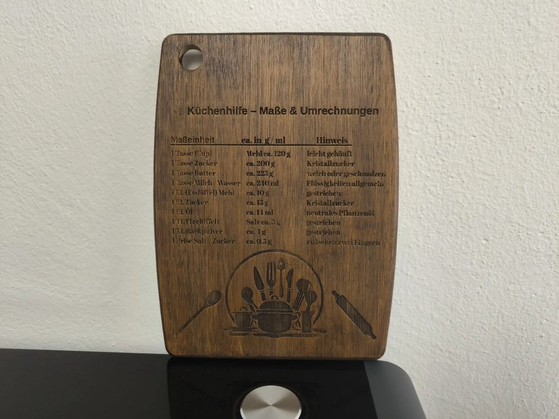 ✅ Motiv: Gravur „Küchenhilfe Maße & Umrechnungen“