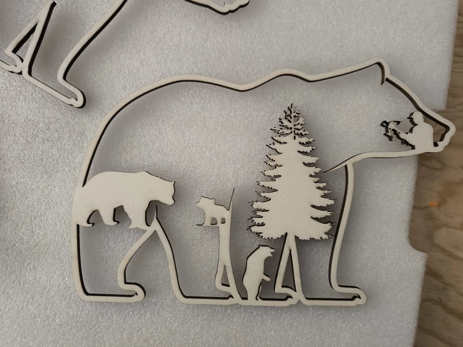 Dieser Layered Holz-Bär bringt den Zauber des Waldes direkt in dein Zuhause. Mehrere präzise gelaserte Schichten aus stabilem 4 mm Pappelsperrholz schaffen einen einzigartigen 3D-Tiefeneffekt mit Bäumen, Bergen und Bärenfamilie.